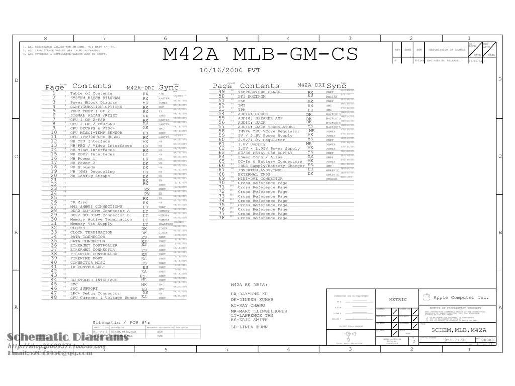 THE MOTHERBOARD SCHEMATIC FOR APPLE M42A MLB-GM-CS.
